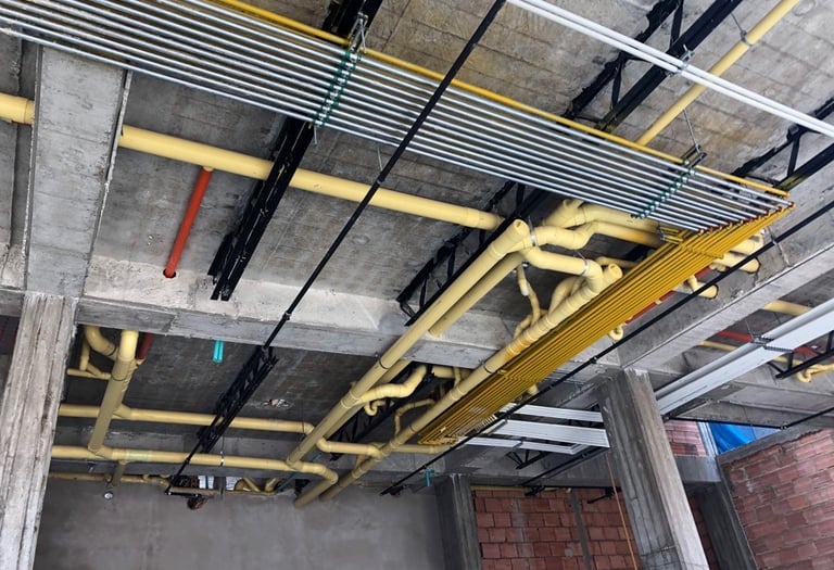 Diseñamos e instalamos redes hidráulicas y sanitarias cumpliendo con las normas técnicas vigentes, garantizando eficiencia, presión adecuada y un óptimo desalojo de aguas residuales. Implementamos sistemas en PVC, CPVC, PPR y tecnología de termofusión, asegurando durabilidad y funcionamiento seguro. Incluye acueducto, desagües, ventilación sanitaria y acometidas internas y externas.